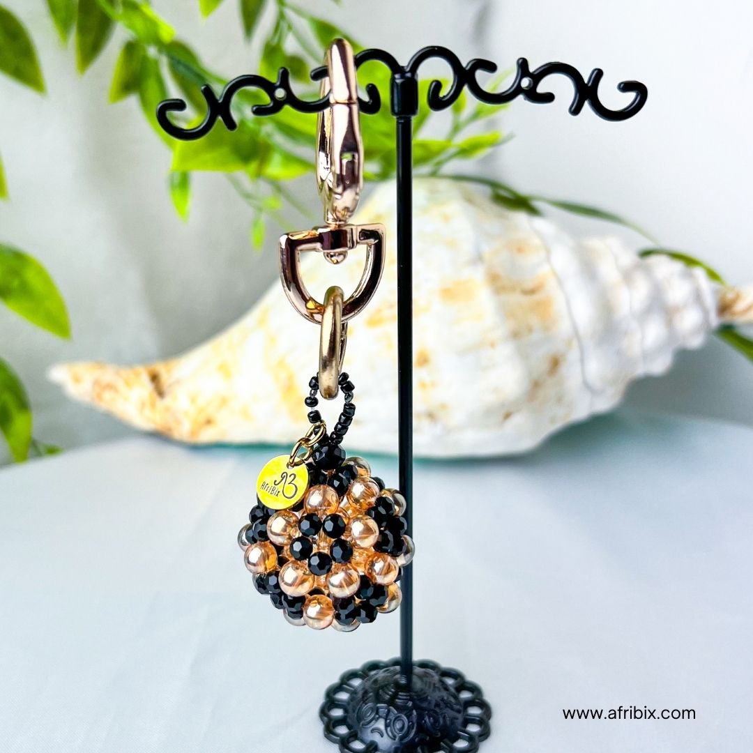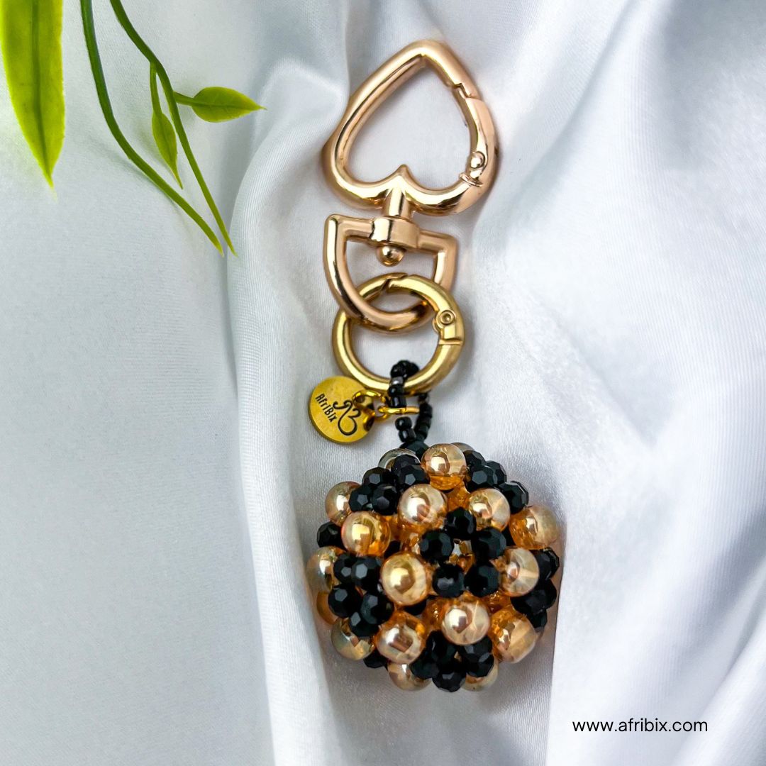 Gold and Black Crystal Ball Round Bag Charm, Purse Charm, Women's Bag Essentials
