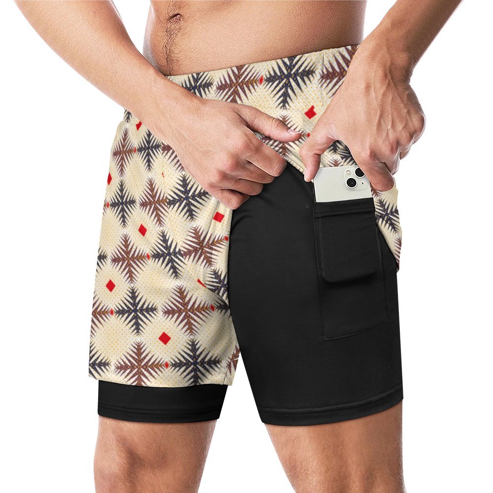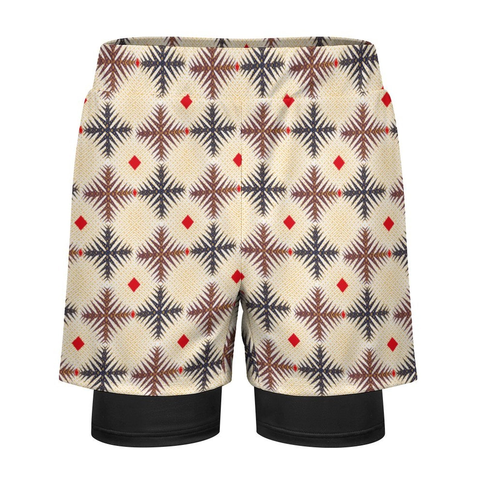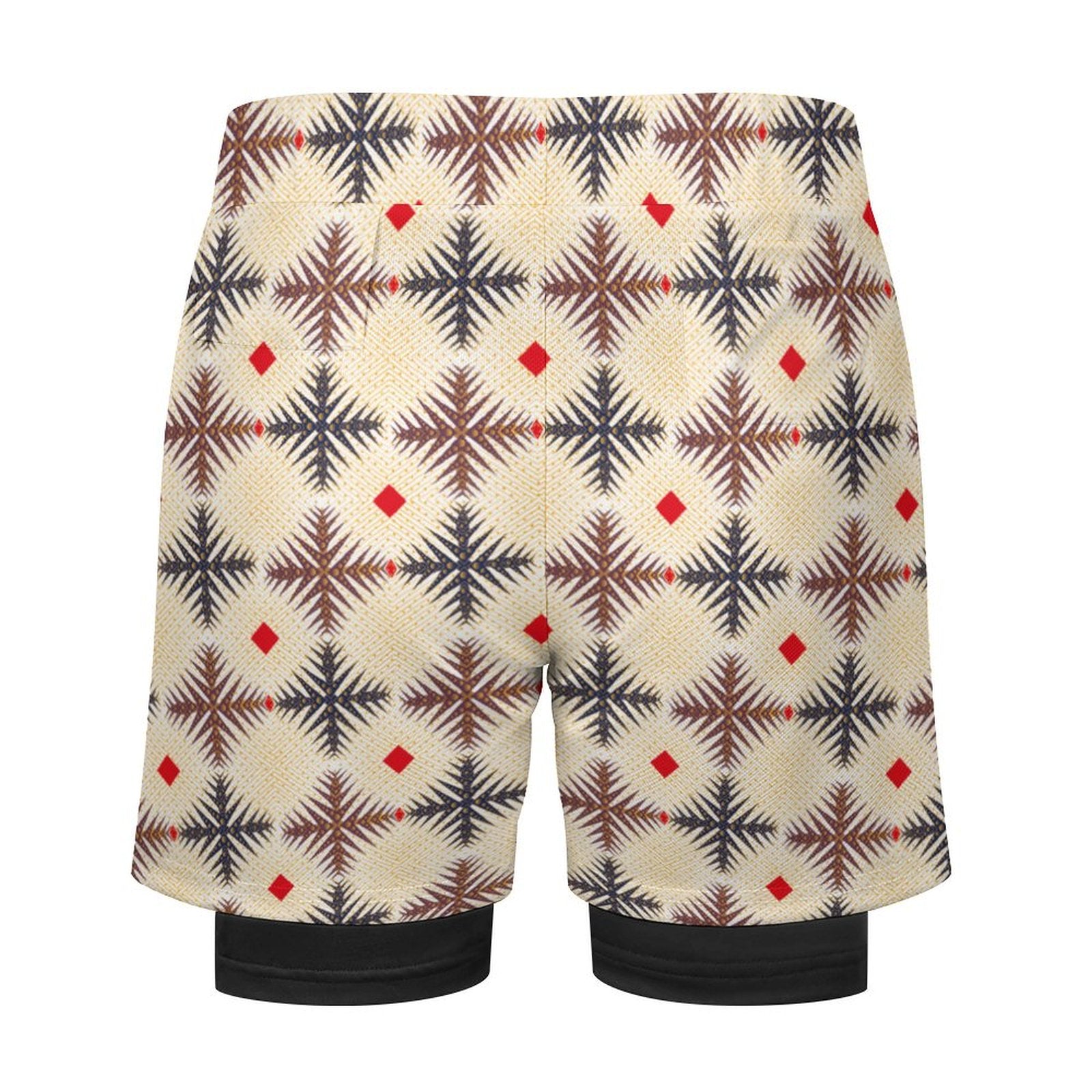 AfriBix Ankara Men's Athletic Shorts with inner tights - cream