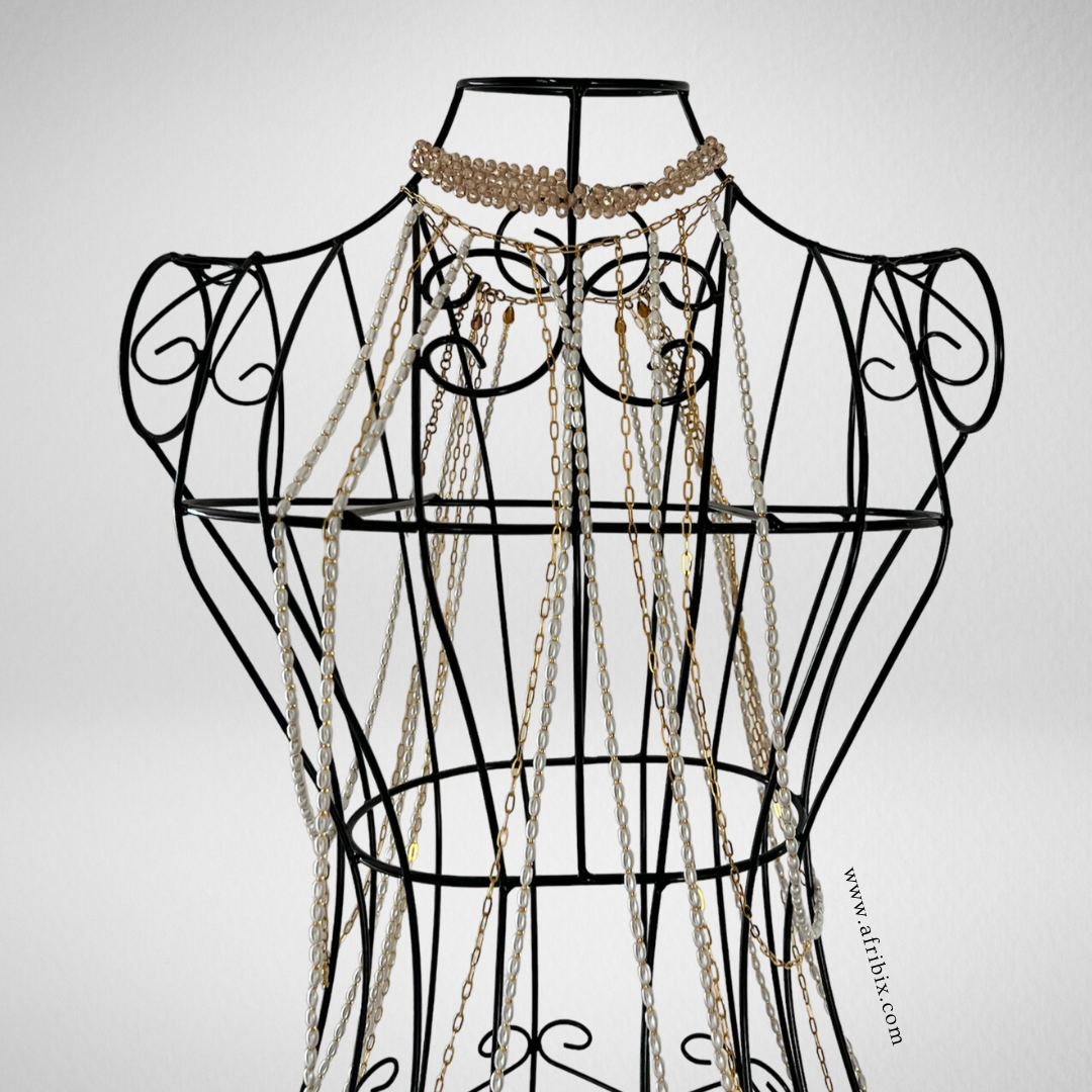 AfriBix Gold Body Chain Harness Necklace with draped pearls - Daisy
