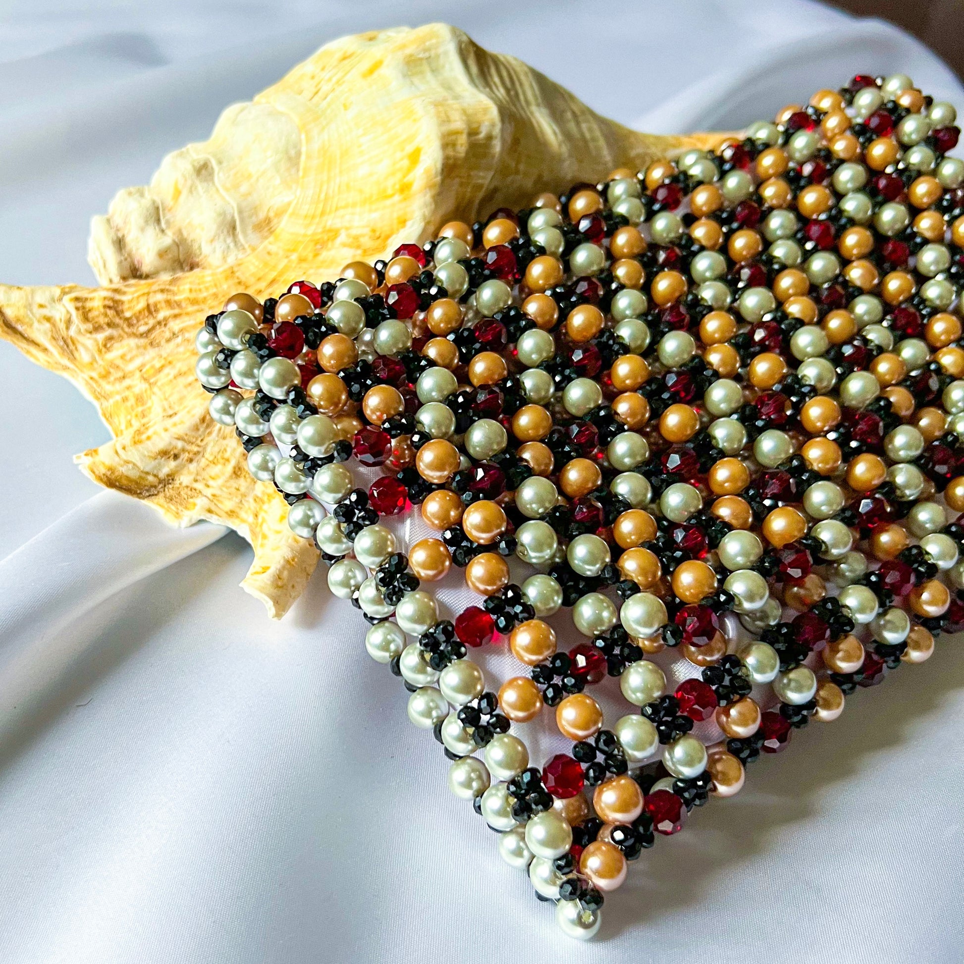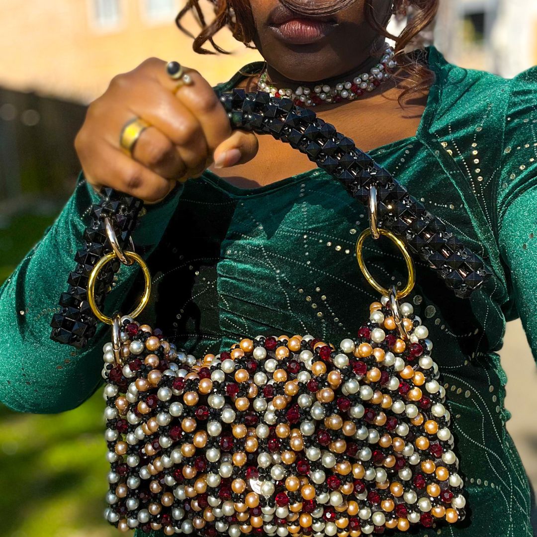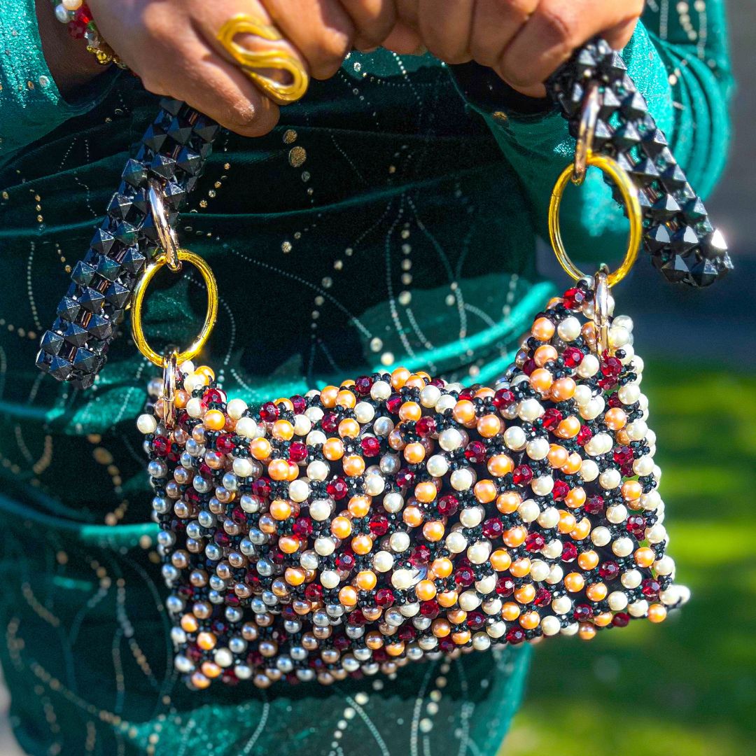 Handcrafted luxury statement clutch made with premium faux pearls and dazzling crystal beads, this clutch bag is exquisite, elegant, and stylish. Made with high-quality beads, each piece is carefully selected to ensure.