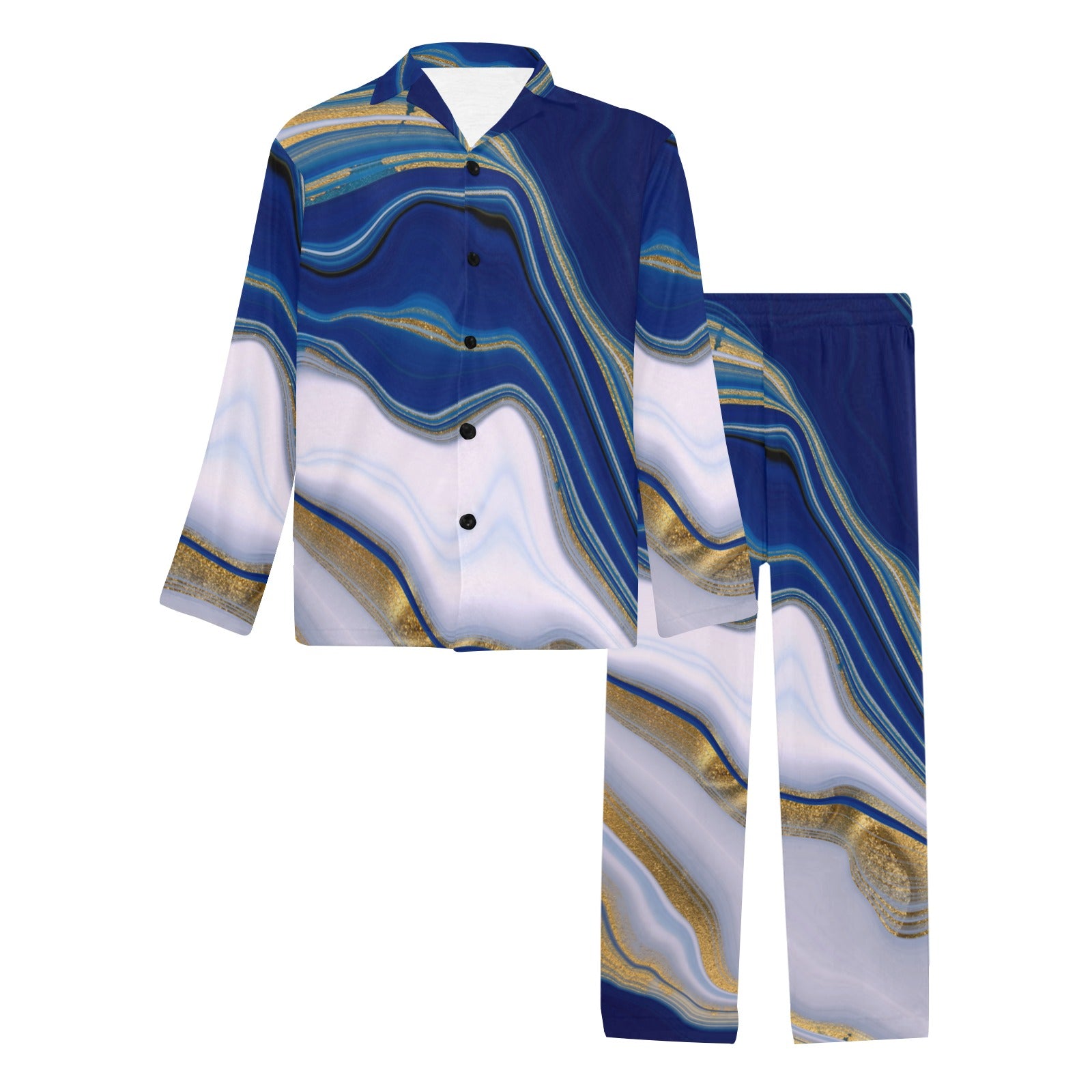 Stay comfortable and stylish all night long in this blue and white marble galaxy print Men's Long Pyjama Set. Made specifically for men, these pyjamas are designed with ultimate comfort in mind. Crafted with a high-quality soft material, these pyjamas are perfect for a good night's sleep. Sleep soundly and wake up refreshed in AfriBix Pyjamas.