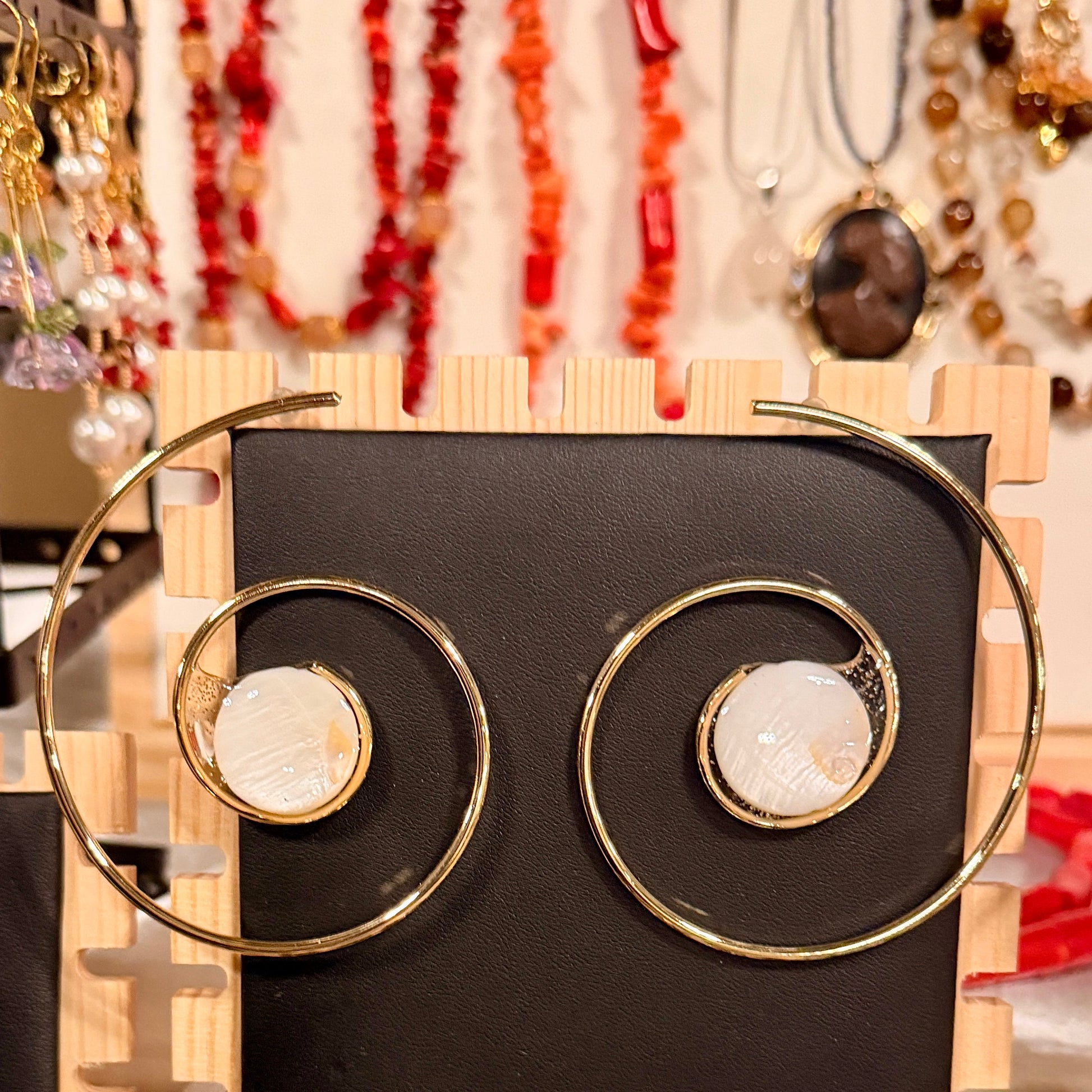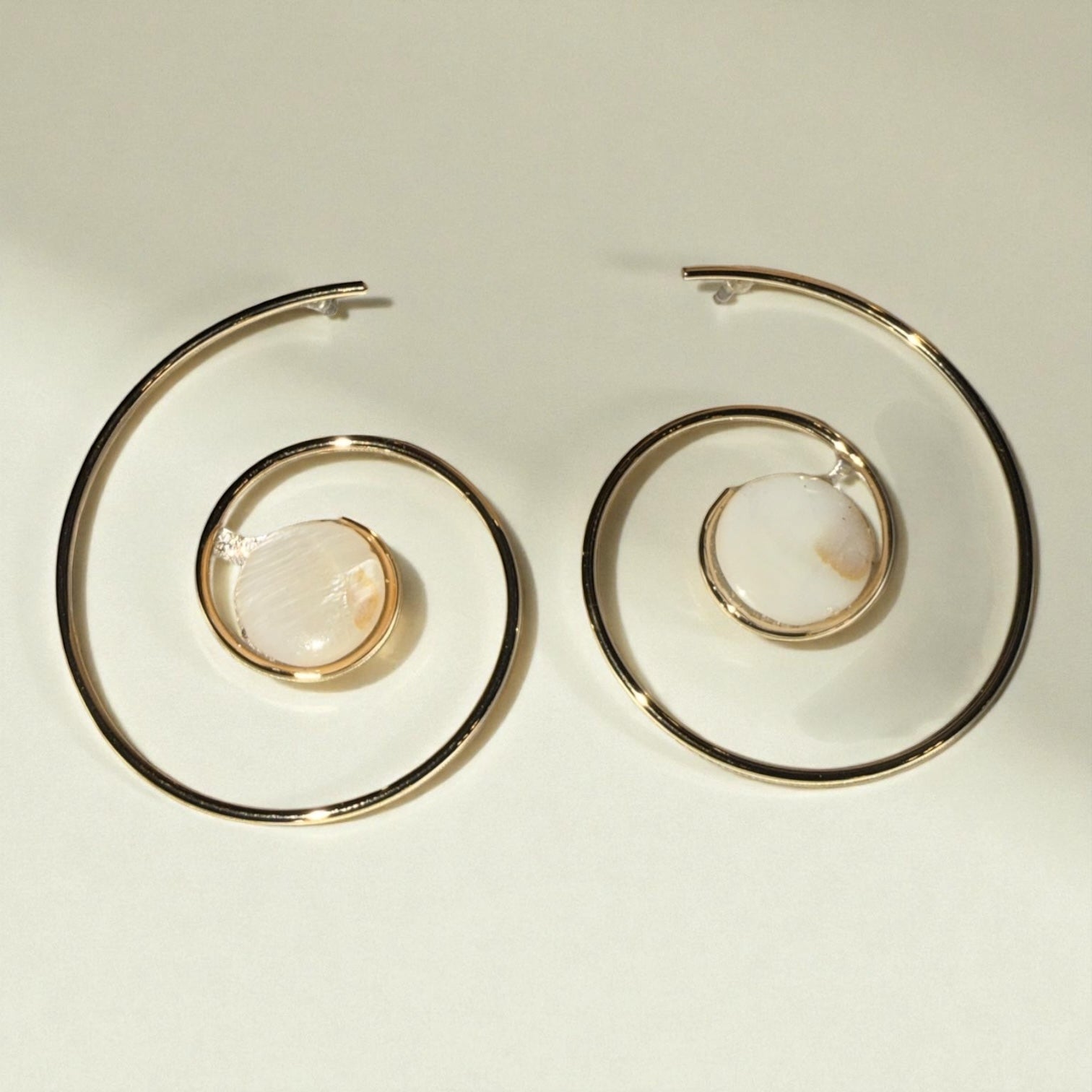 Gold Spiral Mother of Pearl Earrings – Hypoallergenic Stainless Steel