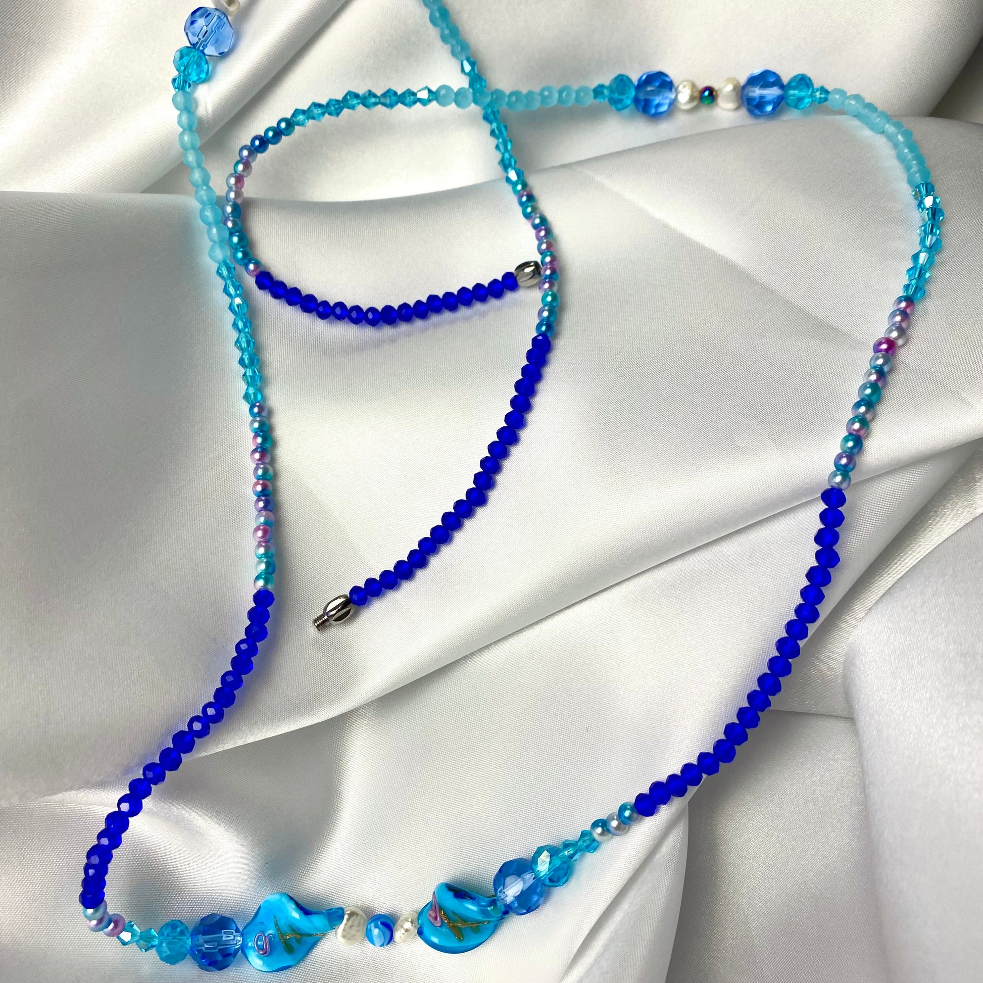 - Blue acrylic crystal beads (2-8mm in diameter)