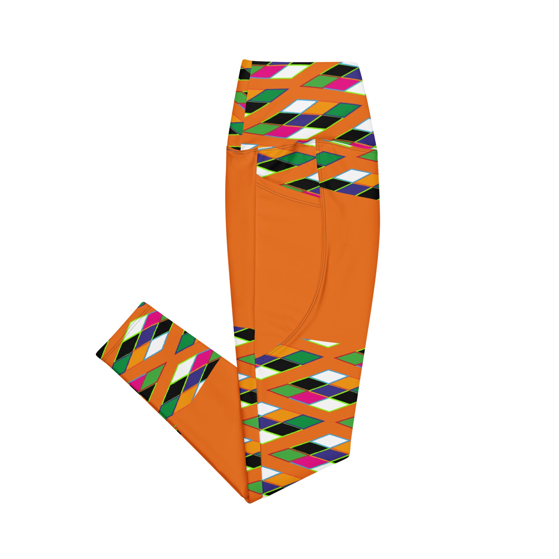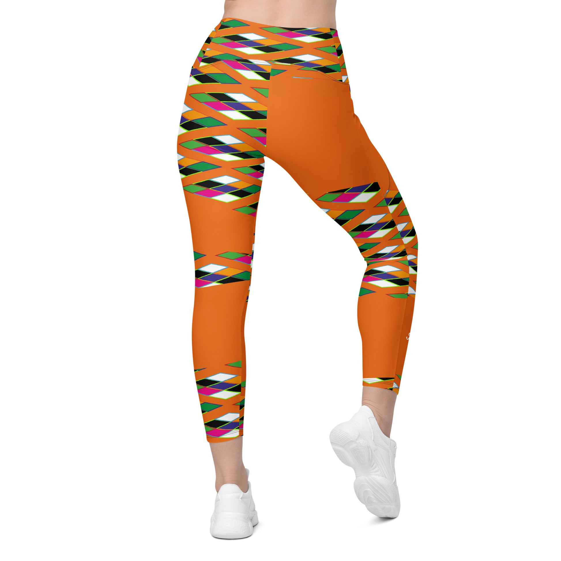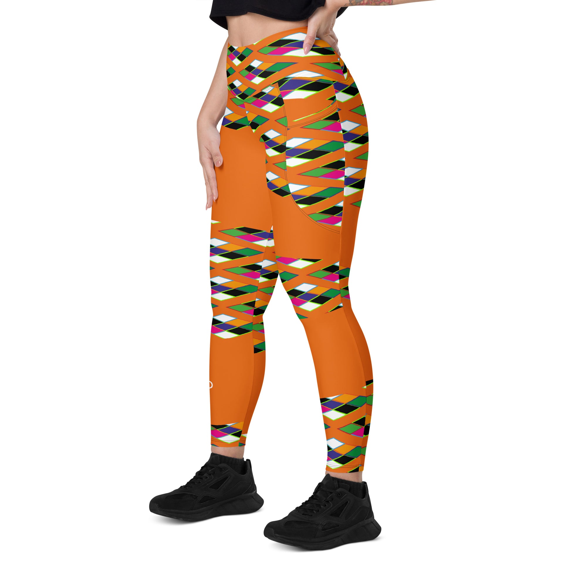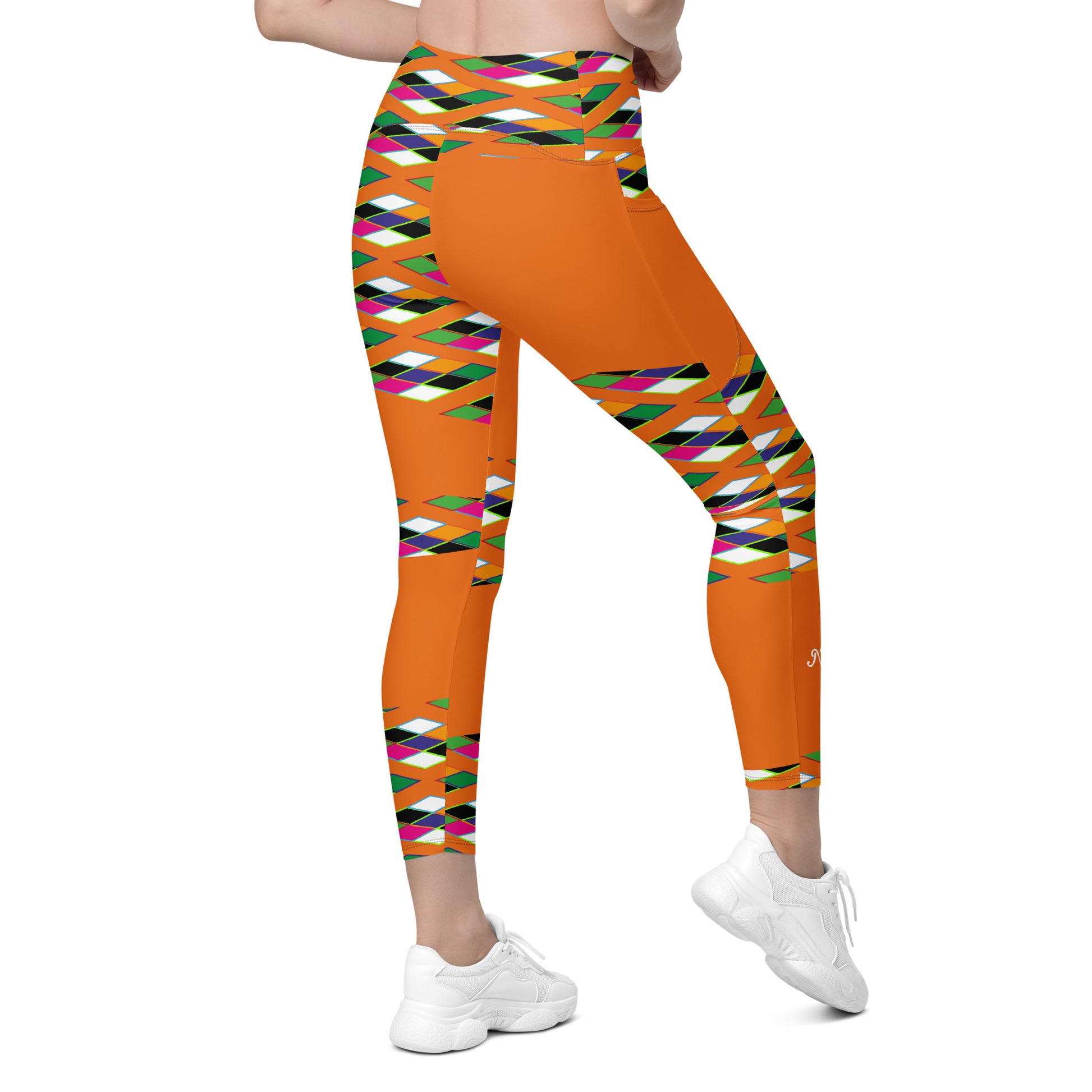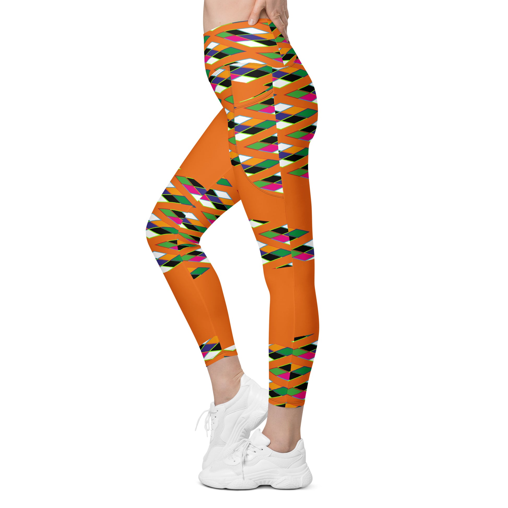 Orange Pyramid Print Leggings with pockets