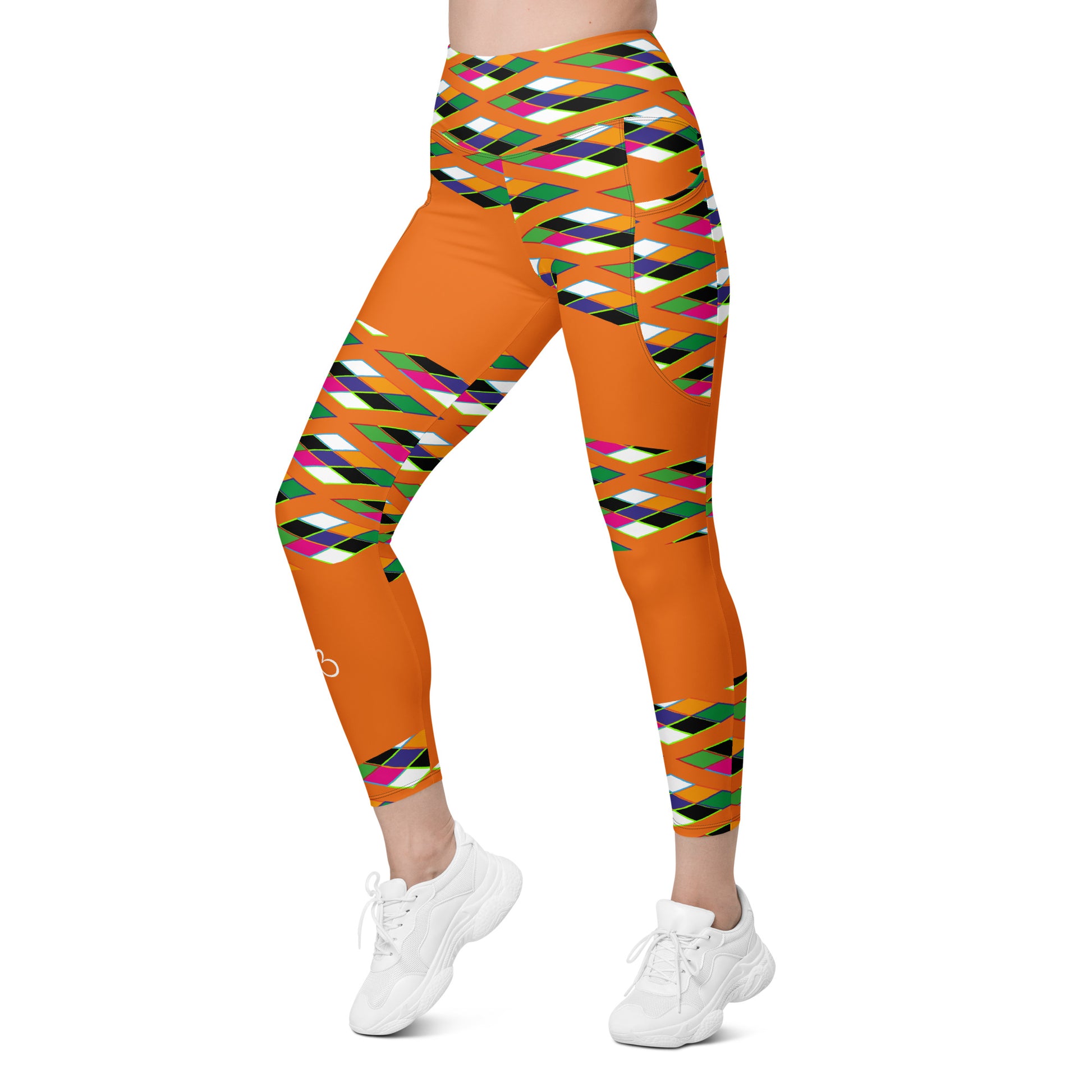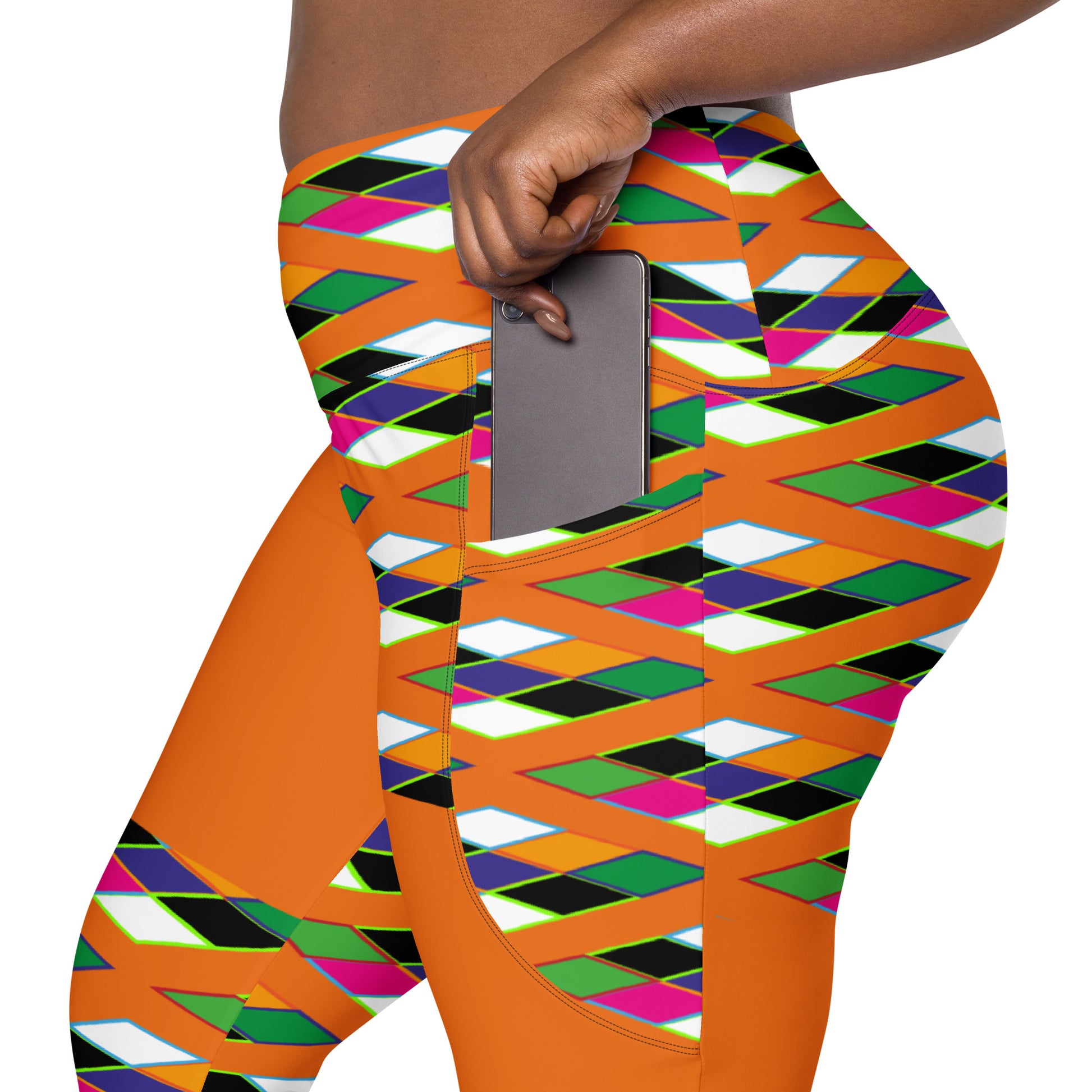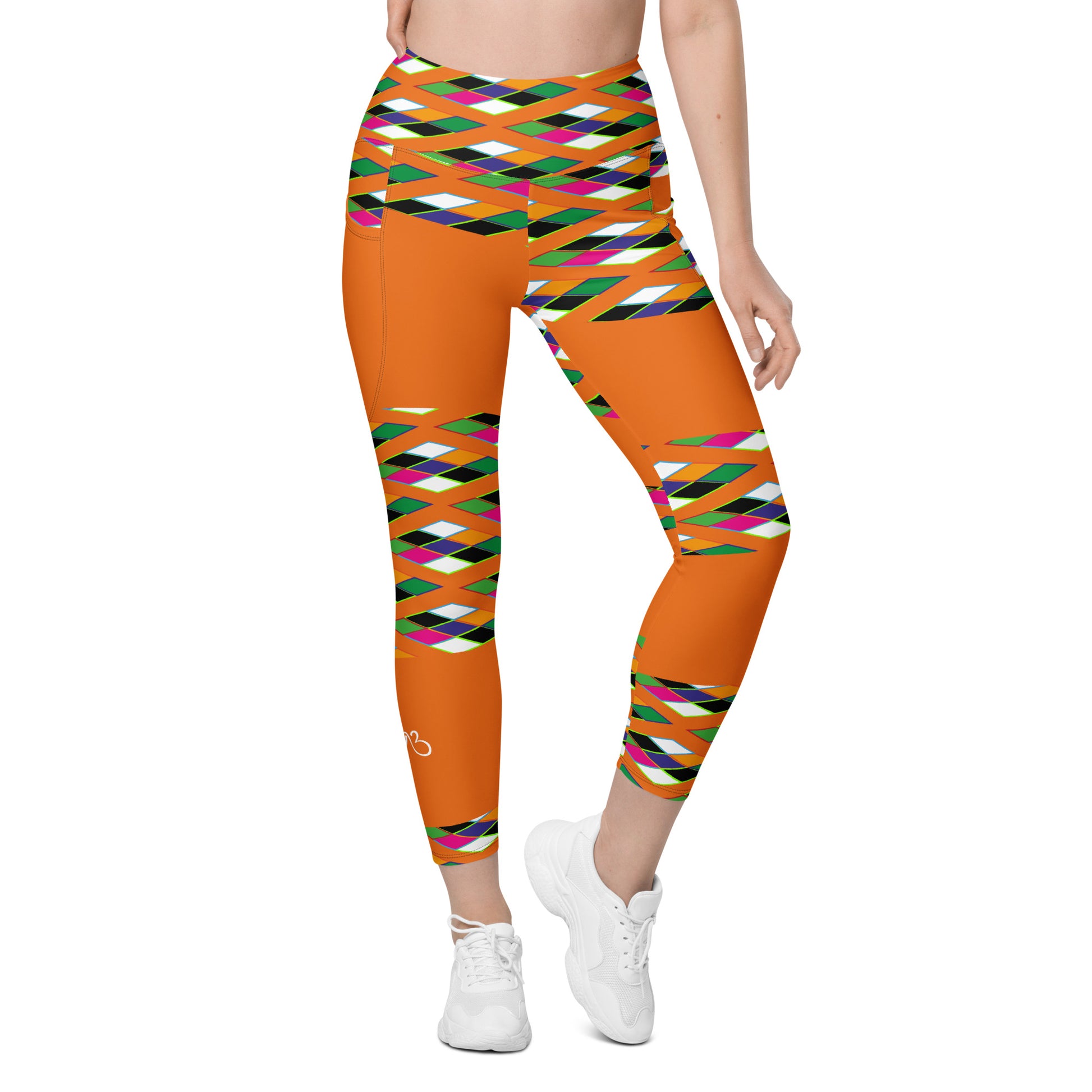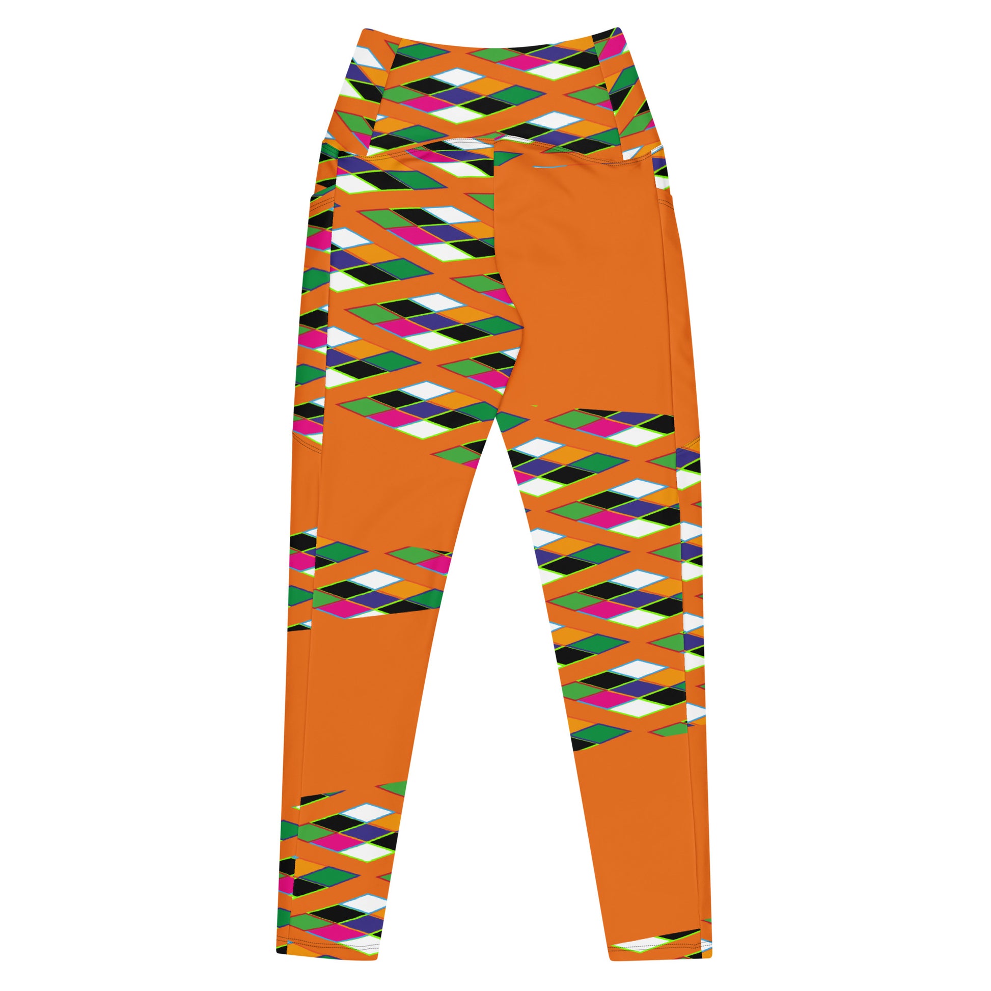 Orange Pyramid Print Leggings with pockets