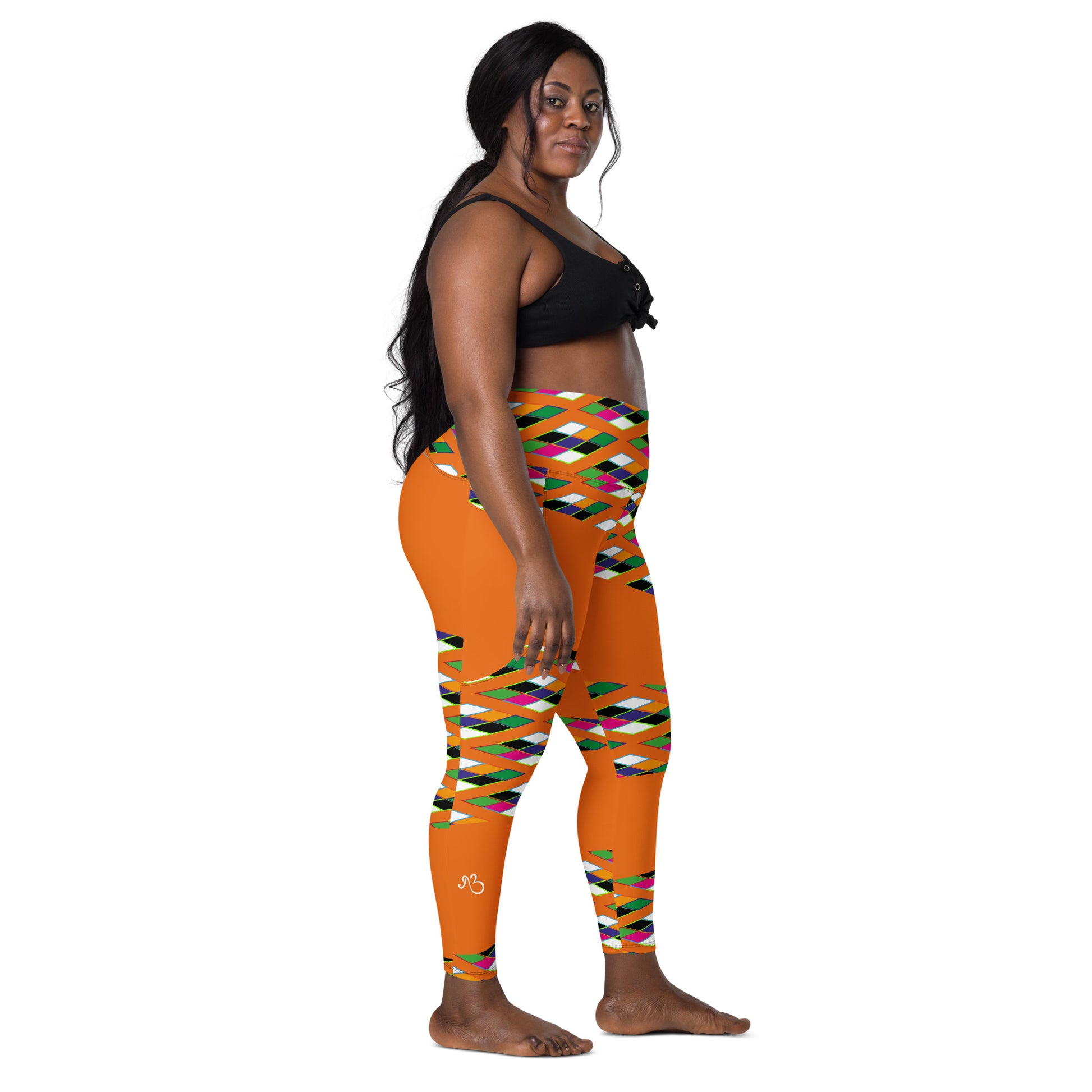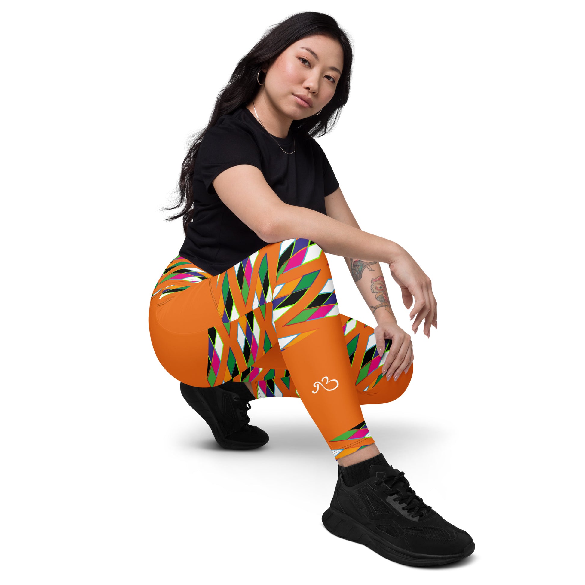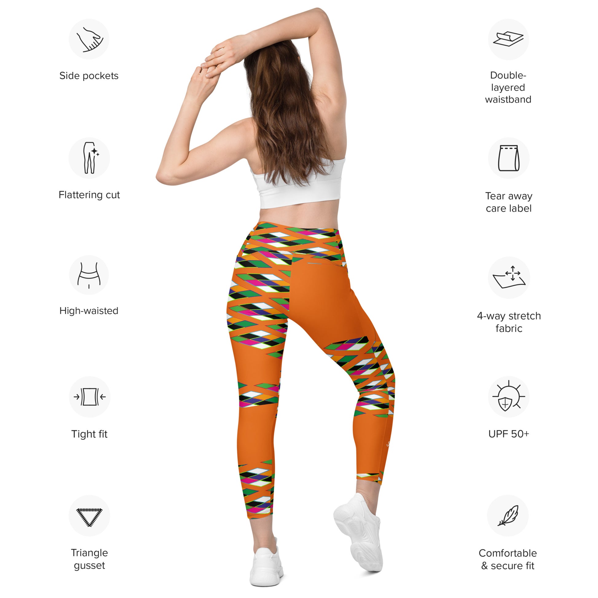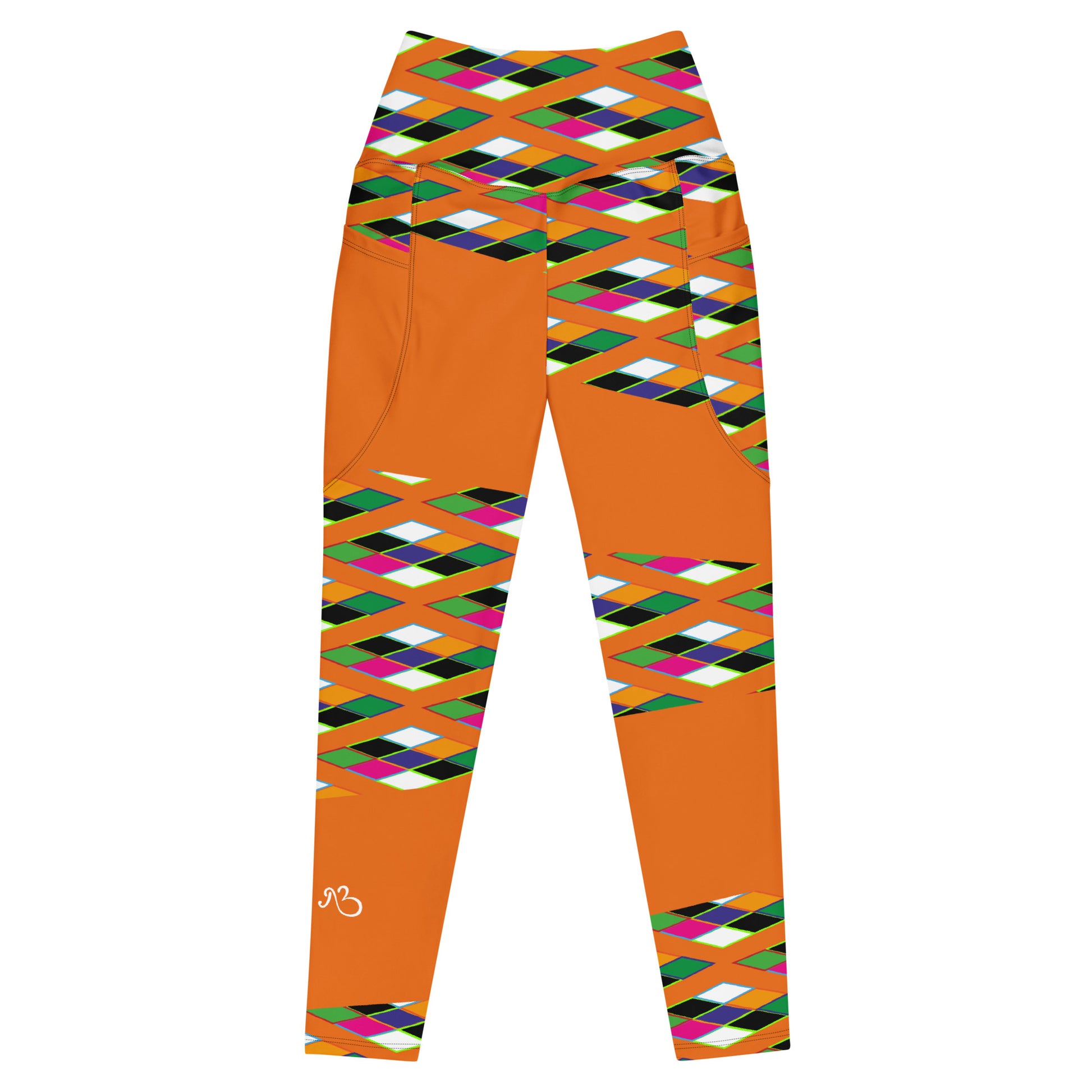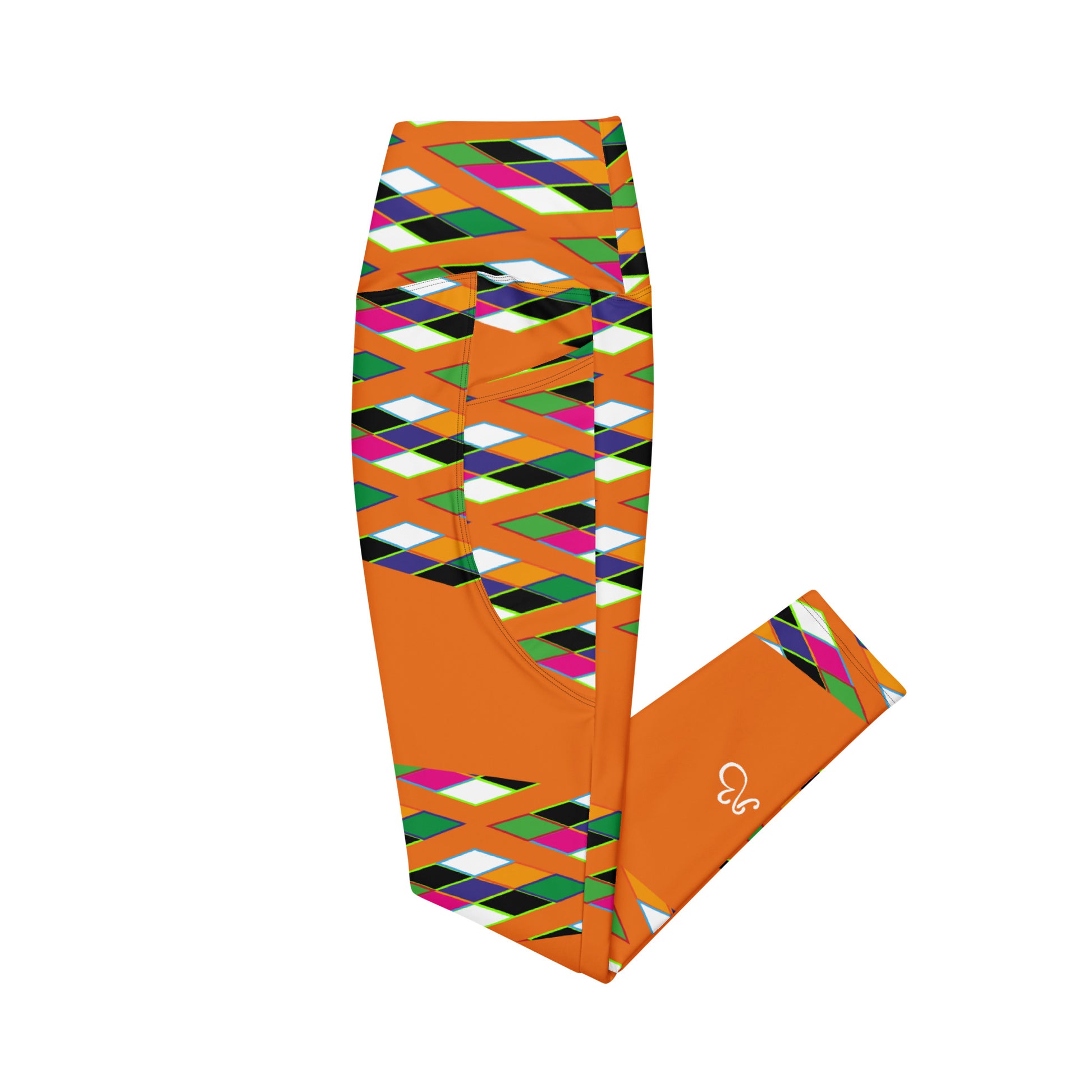Orange Pyramid Print Leggings with pockets