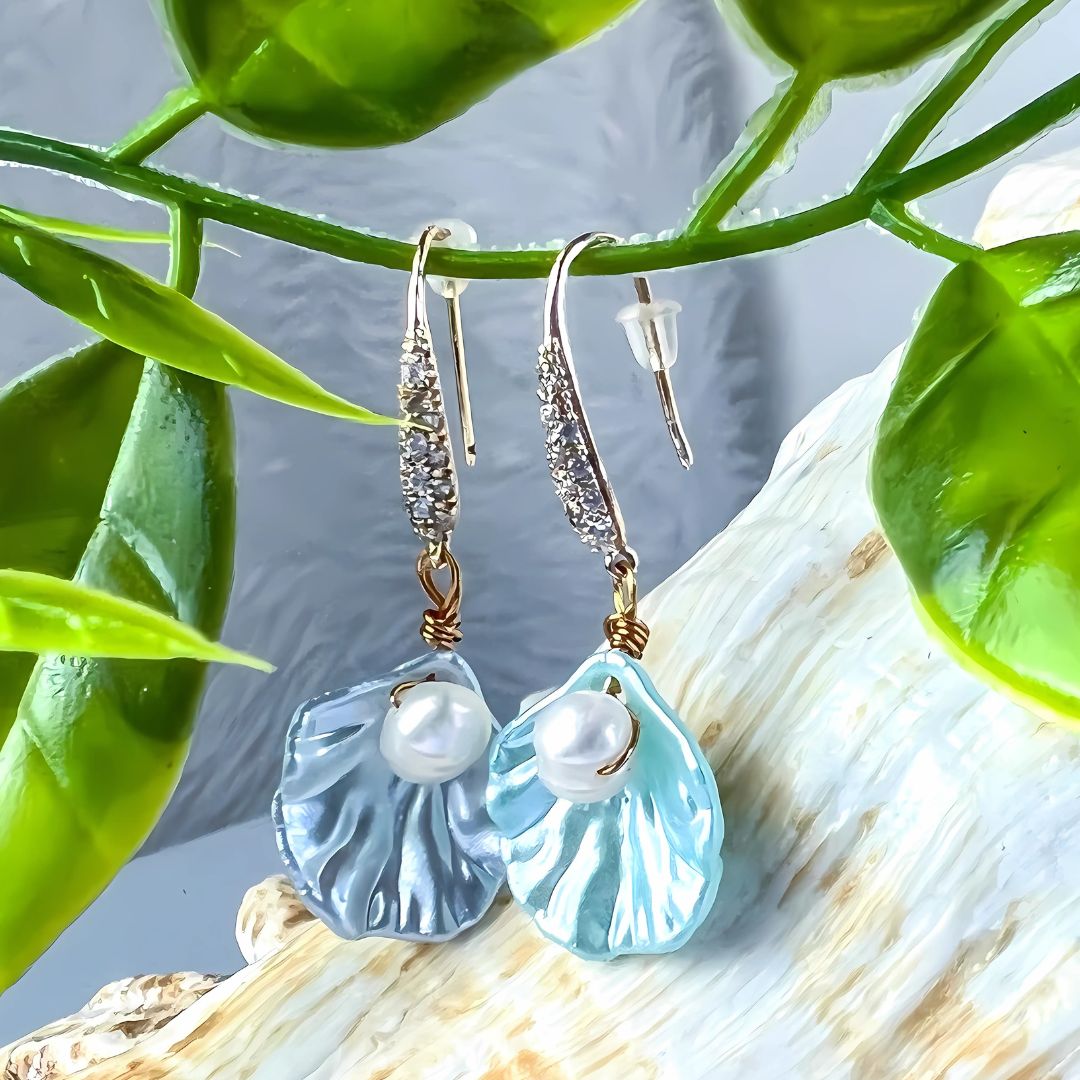 This exclusive necklace set features freshwater pearls, frosted amazonite, and mother-of-pearl beads delicately woven with satin gold and finished with tarnish-free gold plated stainless steel fastenings. This pearl necklace set is luxurious, unique and perfect for any occasion, making it an ideal gift.