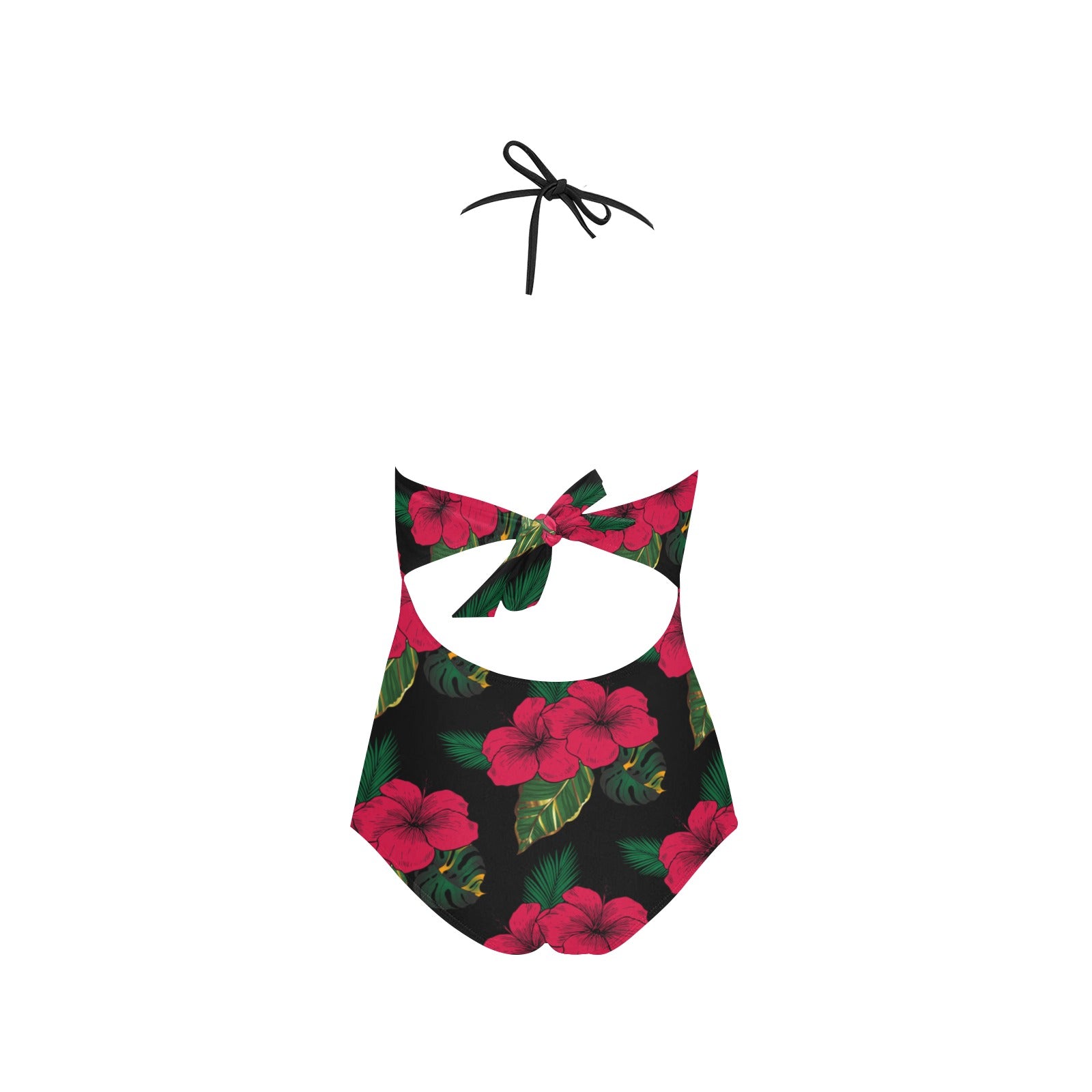 Queen Vee Hibiscus Lace Embossed One Piece Red and Black Floral Swimsuit