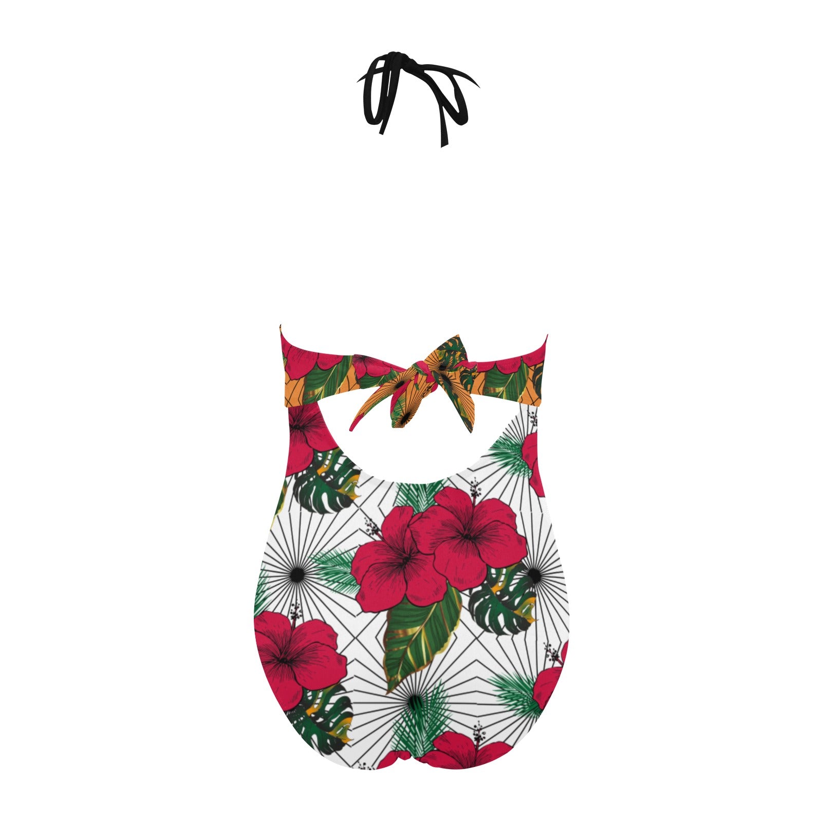 Queen Vee Hibiscus White Bow Cutout Backless One Piece Swimsuit