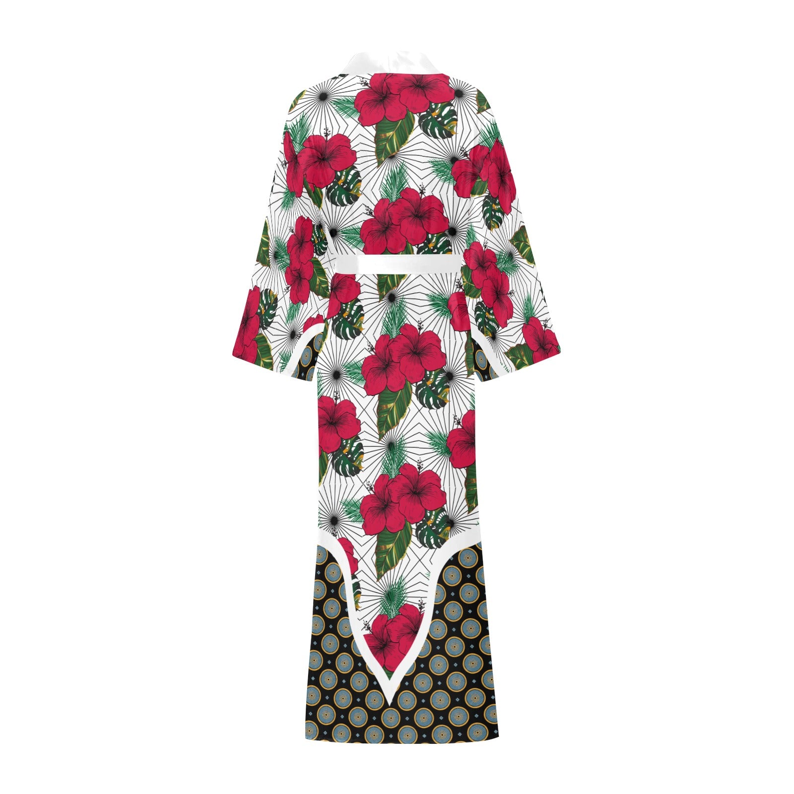 Queen Vee White Hibiscus Women's Long Kimono Robe