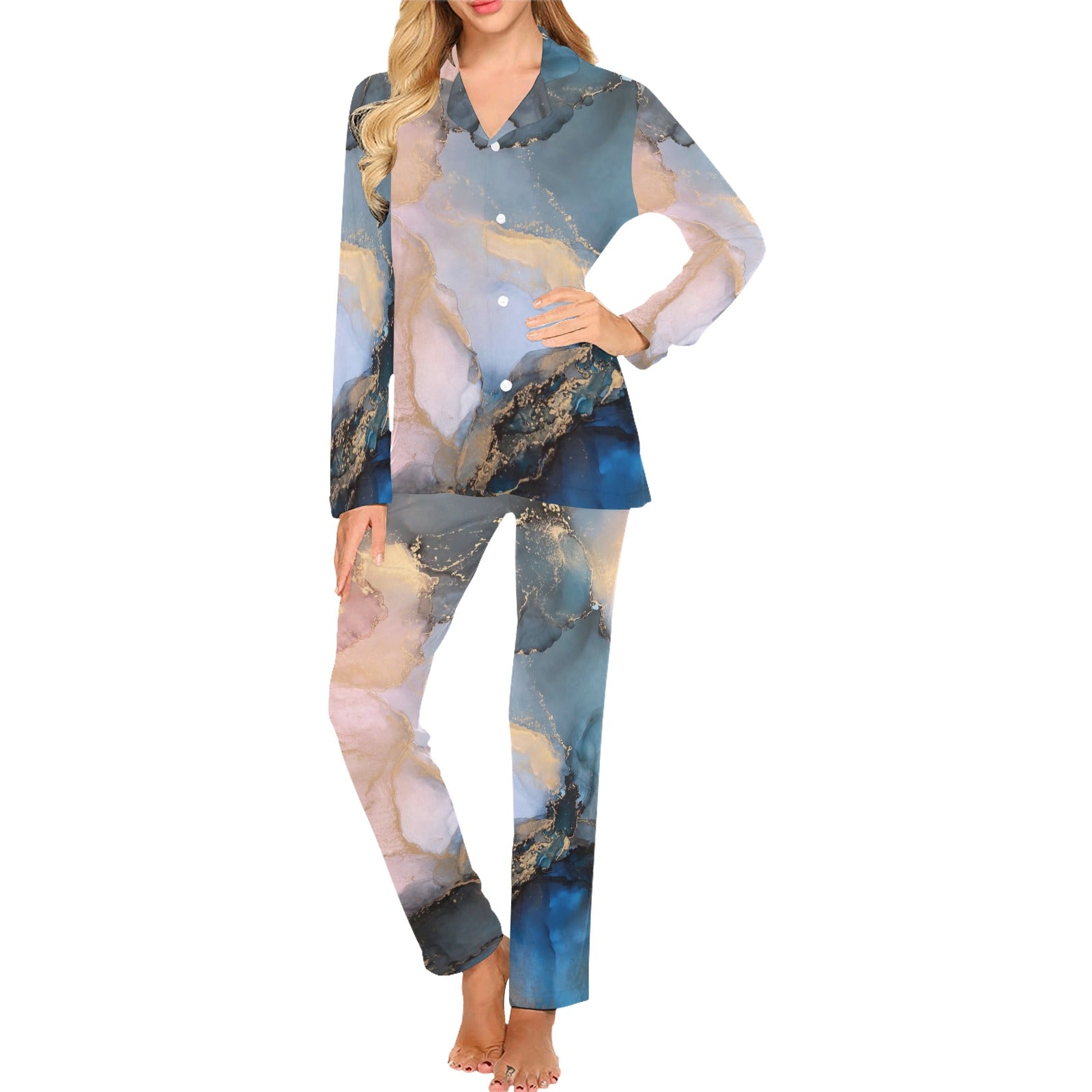 Space Galaxy Marble Print Women's Long Sleeve Loungewear Set