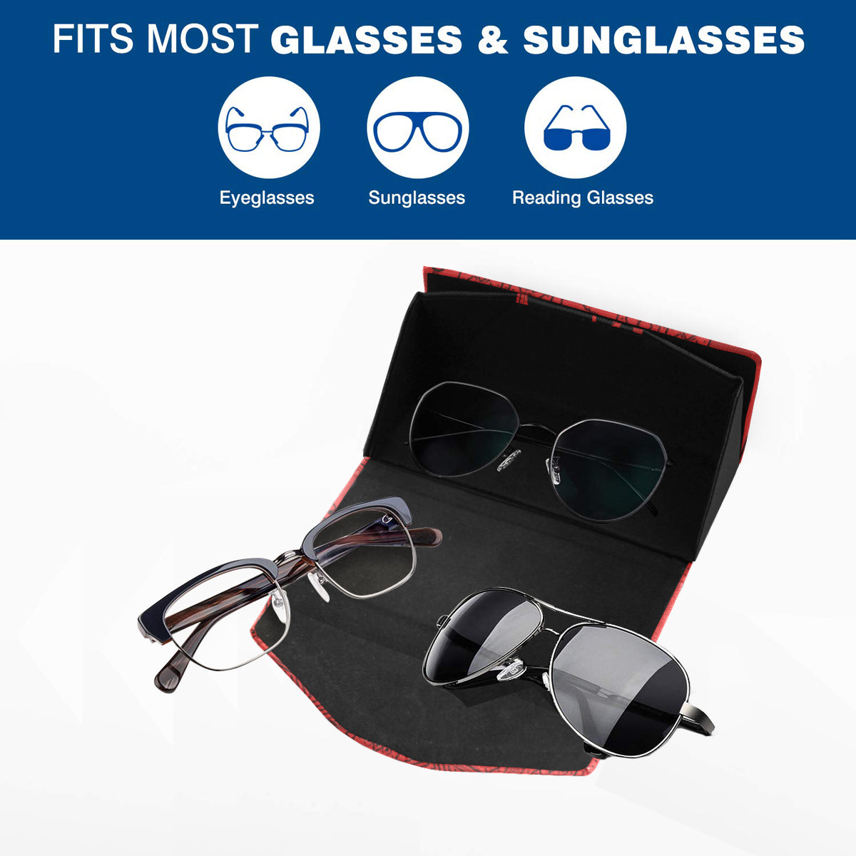 - Fits most eyeglasses, sunglasses and reading glasses.