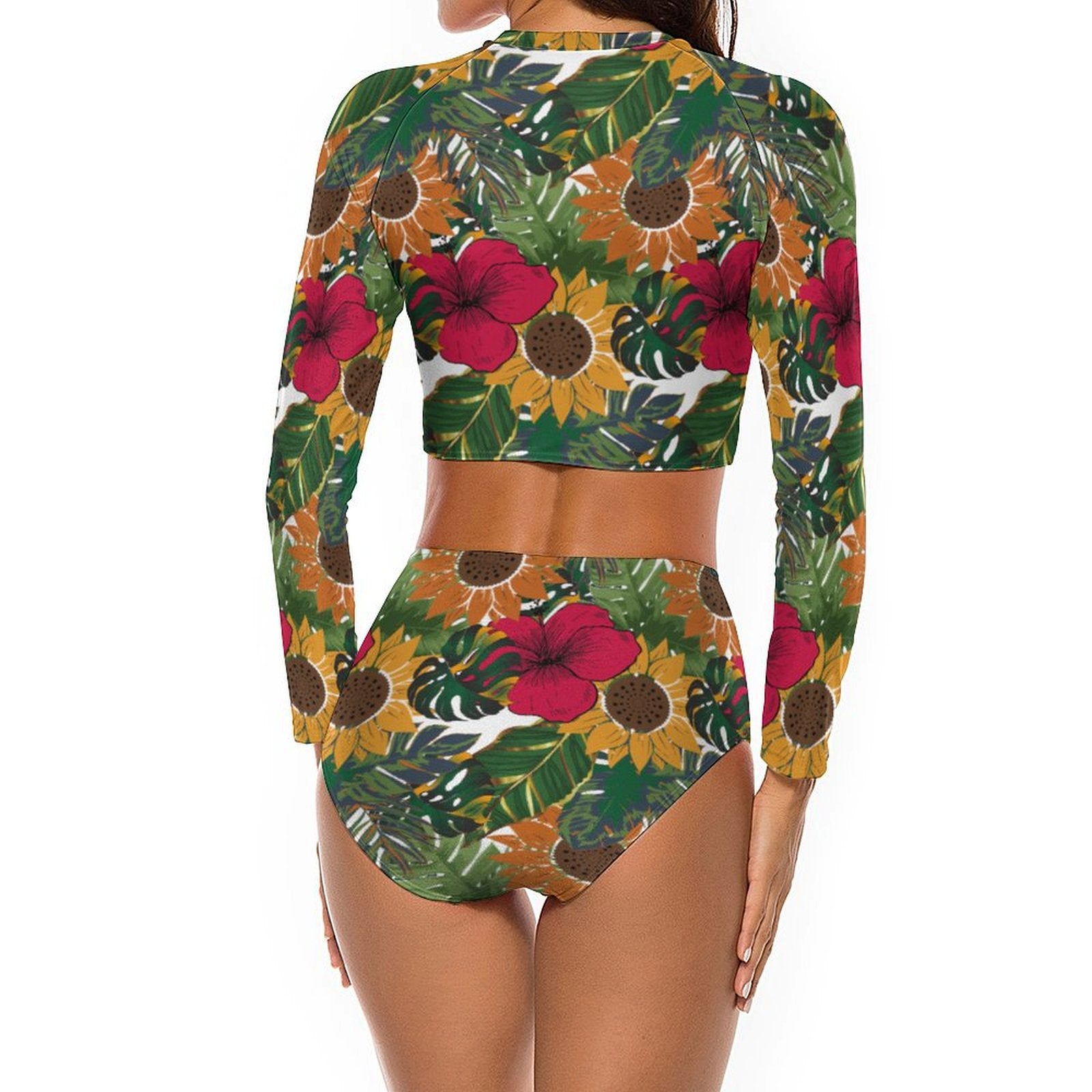 Own the waves in style with this sleek long-sleeve two-piece bikini floral swimsuit from our Queen Vee collection. Effortlessly elegant and boldly modern, it sculpts your silhouette while offering graceful coverage — perfect for confident seaside moments.